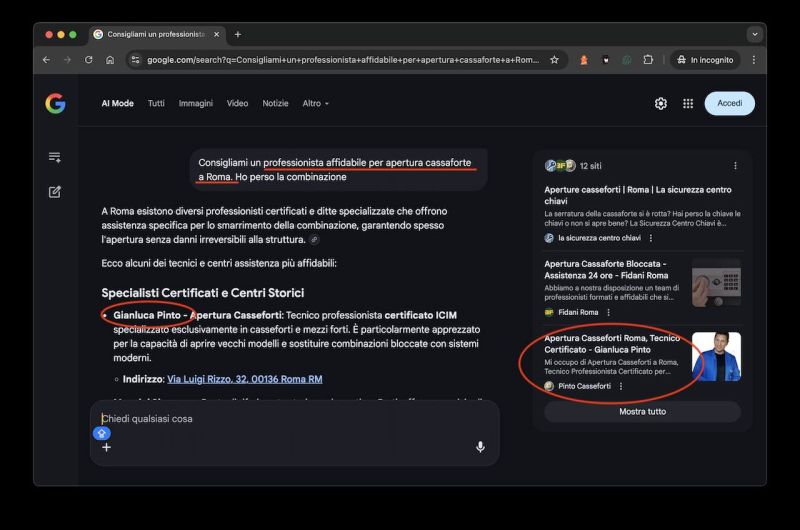 Un blog utile non serve solo a “portare traffico”, ma a dare a Google materiale credibile da usare quando una persona fa una domanda complessa. Se gli articoli rispondono a dubbi reali, aiutano sia la ricerca organica sia le nuove risposte AI. Se invece sono testi scritti solo per riempire il sito, restano deboli sia per Google sia per il lettore. AI Mode vive di domande complesse. Quindi servono articoli che rispondano ai dubbi reali del cliente, non contenuti scritti “per fare blog”. Per esempio: